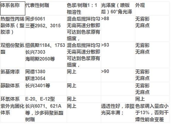 做以上测试时,混合顺序对实验结果没有影响;测试所用的流平剂为EFKA3777、BYK306等,喷板厚度为20微米,UV漆喷板厚度为15微米。