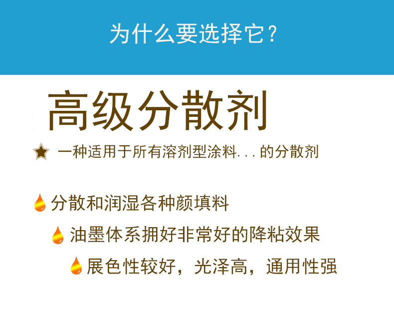2.2、本品是含锚定基团的中分子型分散剂。因此对分散后的色浆和油漆,贮存稳定性非常好。