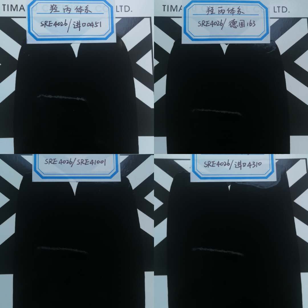 SRE-4026的光泽与黑度与进口0451的效果相当,德国163在该体系表现较好与进口0451的效果相近, 进口32500依旧偏差一点。黑度的主要判断是因为其透射色相的差异,透射色相呈棕红相的,其厚膜黑度更黑并呈偏蓝相,反之透射色相呈蓝相的,其厚膜黑度要灰些并呈偏红相。(个人经验依据) |