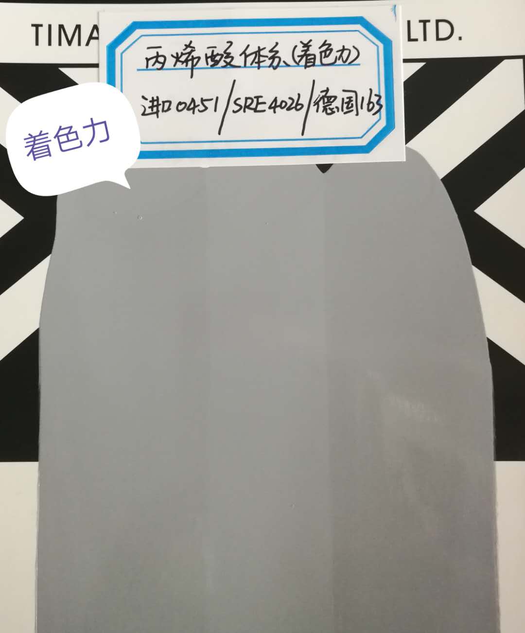 进口0451与SRE-4026降粘效果相近,都能较好的降低丙烯酸体系的粘度,降粘性稍好于德国163与进口4310,也要优于进口32500,但没有2K PU体系那么好与明显。 附插图。 |