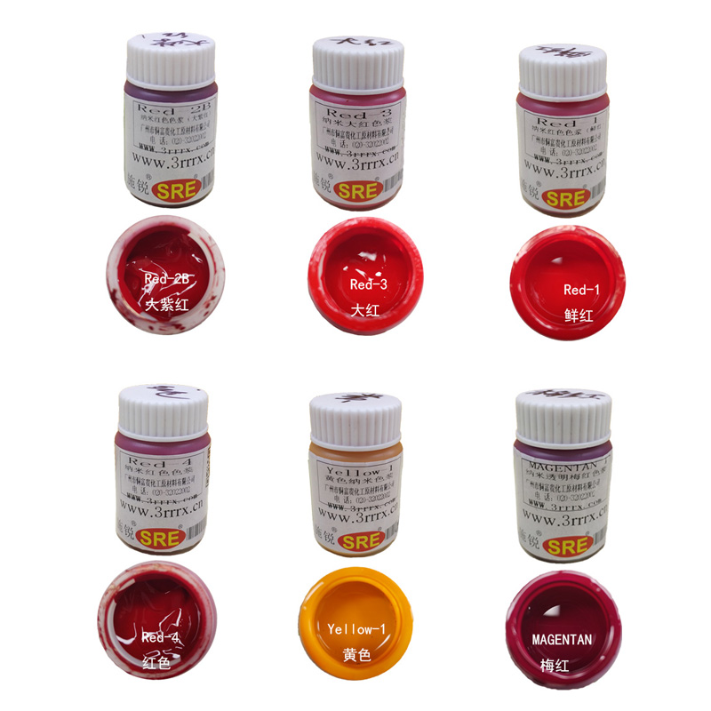 纳米色浆与色膏、色精的区别:其中纳米色浆与色精都具备透明的优点,但是,色精不耐温,容易迁移,所以纳米色浆刚好替补了色精的缺失;色膏就好区别了,成分里含有高分子量的树脂,不透明。具体的我们聊聊纳米色浆,比如: