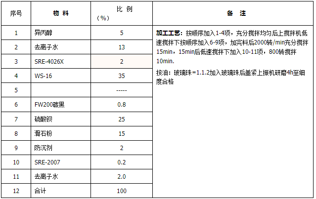 表2.-WS-16水性黑浆研磨参考配