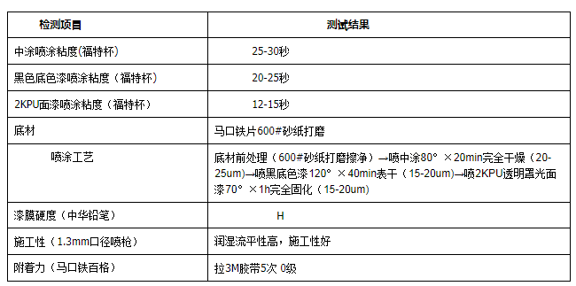 表9.-2KPU黑色底色漆与中、面涂配套施工结果数据