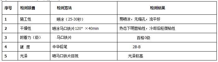 表8.-WS-16黑底漆与中、面涂配套施工结果数据